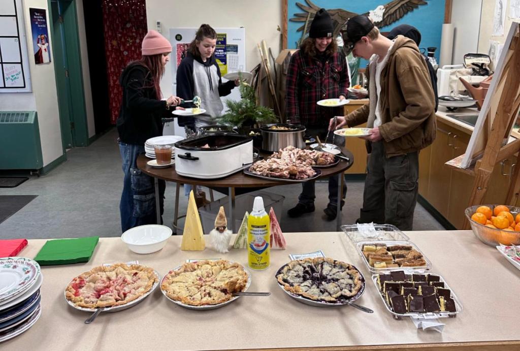 A Christmas dinner party for the students at Salmon Arm Storefront was held on December 19th, just before the holiday break. Students were treated to turkey, ham and all the fixings to go with it! Every student that attended that last week of school was also given a small gift, with staff trying to make the time as special as they could.