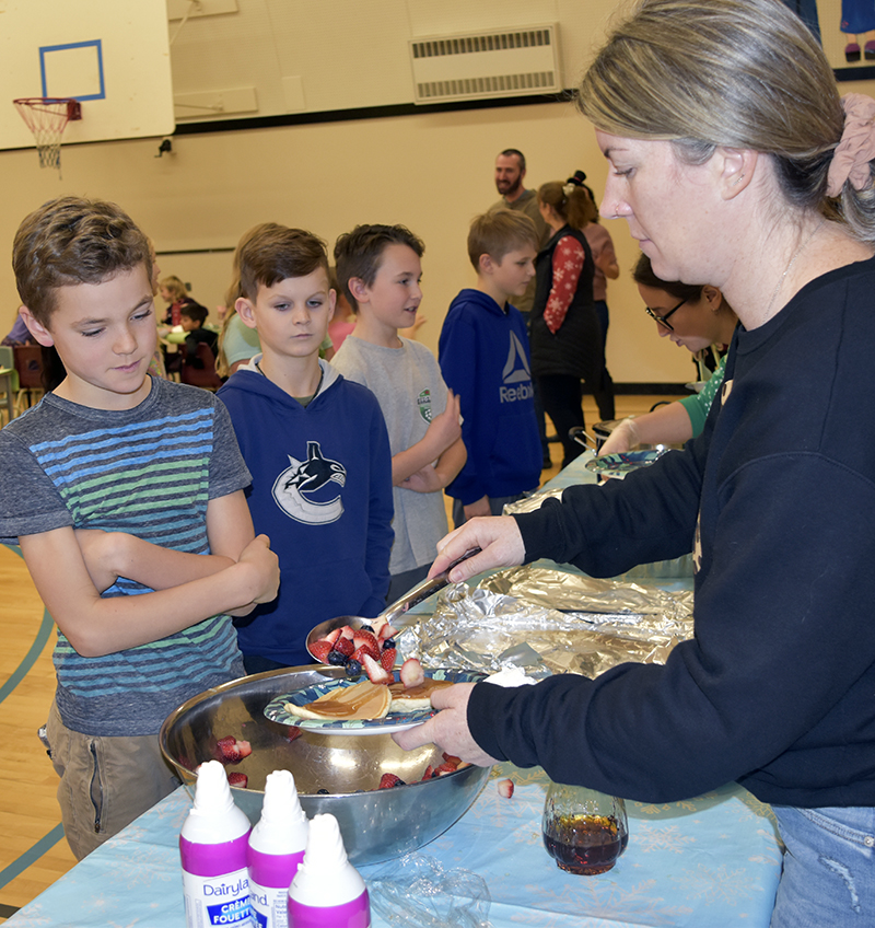 “It was a special day as the entire school gathered as one in the gym for the pancake lunch. We are so grateful for our PAC and volunteers at Salmon Arm West. They truly value community and sense of belonging for all,” said Principal Laura Jegues.