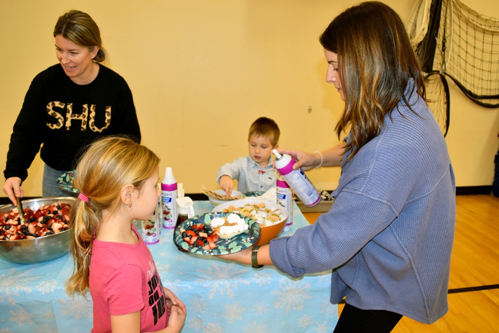Conversations and laughter filled the Salmon Arm West gym as all of the students and staff were treated to a pancake lunch on Tuesday, December 5.
