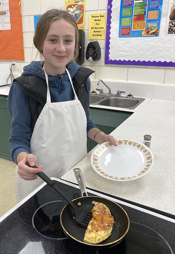 Once a week students at Eagle River Secondary have an opportunity to learn new cooking skills, make a lunch and eat it too! In a new Feeding Futures Lunch Club piloted by staff members, Tricia Jeffery and Jodie Osmundson, students can sign up to cook the lunch of the day! Up first on the menu, on Nov. 21, was make-your-own-omelettes! Staff created a meal plan, offering to teach a different meal each Tuesday of the month.