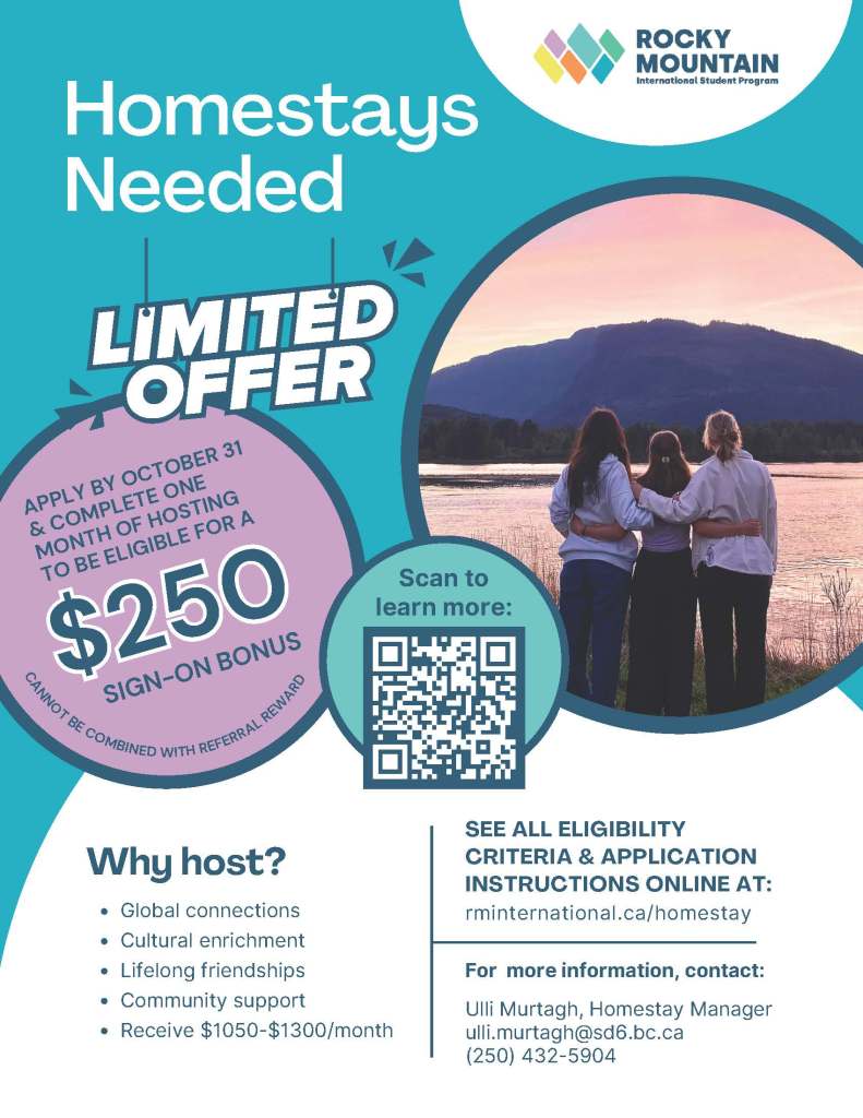 RMISP (Rocky Mountain International Student Program) is looking for welcoming and caring host families for international students coming to our beautiful corner of the world. International students choose Canada as their destination for an abroad study experience because of Canada’s reputation as a safe and stable country, the quality of the education system in Canada, and because Canada offers a society that is tolerant and non discriminatory (Source: CBIE).